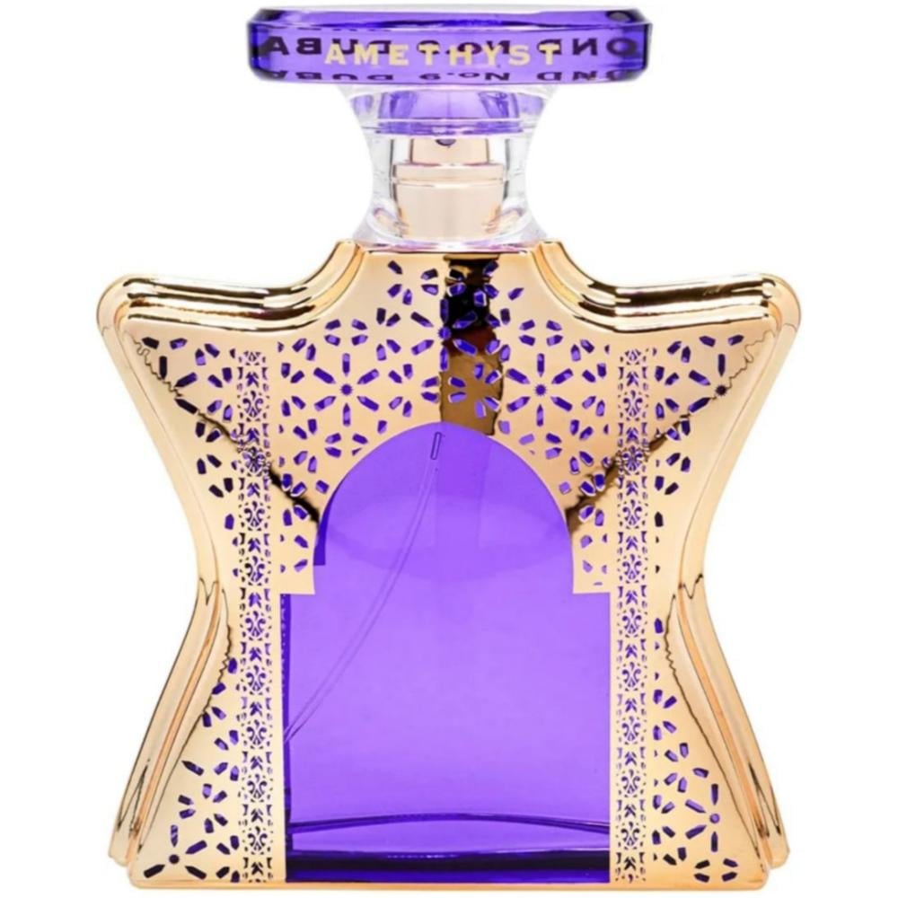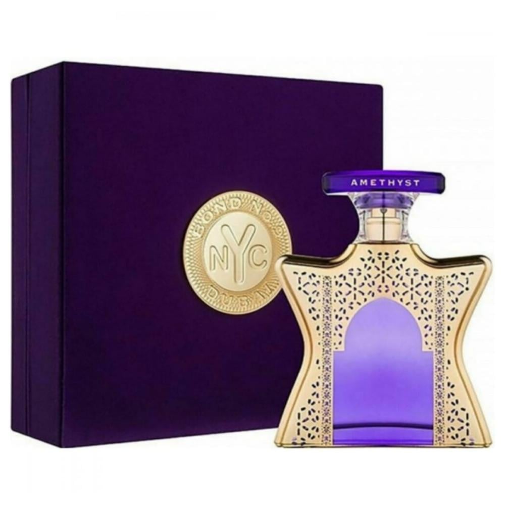 عطر دبي أميثيست هو عطر شرقي زهري للجنسين برائحة الزهور البيضاء والتبغ والعنبر. وهو جزء من مجموعة دبي للعطور المستوحاة من العربية في زجاجة على شكل نجمة مع غطاء معدني ذهبي يعمل كباب. تظهر الثقوب الزخرفية الضوء على زجاجة الجمشت الأرجوانية.